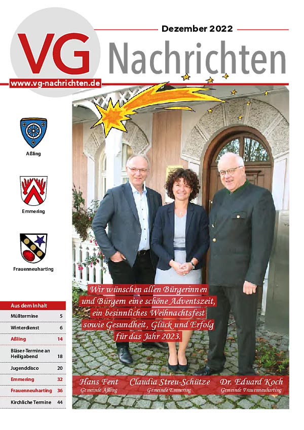Die VG-Nachrichten erscheinen monatlich und werden kostenlos an alle Haushalte der Verwaltungsgemeinschaft verteilt. Die VG-Nachrichten ist kein offizielles Amtsblatt. Die Bekanntmachungen der Mitgliedsgemeinden der Verwaltungsgemeinschaft erfolgen durch Anschlag an den jeweiligen Amtstafeln.