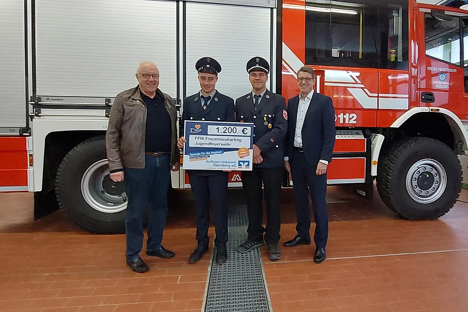 Die Raiffeisen-Volksbank Ebersberg spendete im Rahmen ihrer Weihnachtsaktion 2024 insgesamt 6.000 € an die Jugendfeuerwehren der Verwaltungsgemeinschaft Aßling. Davon bekam die Jugendfeuerwehr Frauenneuharting 1.200 € zugeteilt.